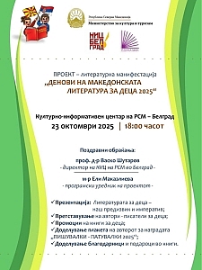 Projektom „DANI MAKEDONSKE LITERATURE ZA DECU 2025“ u KIC-u u BEOGRADU afirmiše se makedonsko književno stvaralaštvo i doprinosi obogaćivanju kulturne razmene između Makedonije i Srbije.