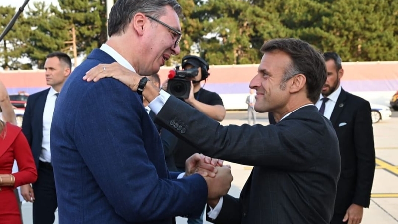 Predsednik Srbije Aleksandar Vučić objavio je na Instagramu fotografije dolaska francuskog predstavnika Emanuela Makrona u Beograd.