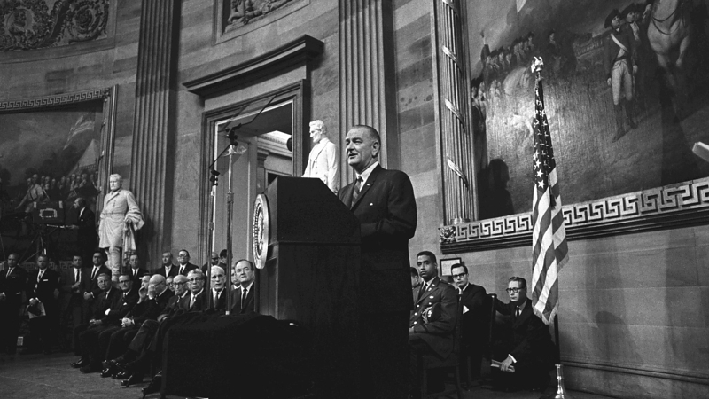 Džonson je iskoristio period jedinstva nakon smrti Džona F. Kenedija da bi usvojio značajne zakone o građanskim pravima. Pobedio je na ubedljivom reizboru 1964. i iskoristio taj zamah da donese niz zakona koji su trebali da izgrade SAD u „veliko društvo“, uključujući Medicare i Zakon o glasačkim pravima, i objavio rat siromaštvu.