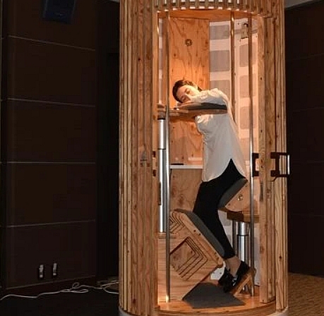 Veličine je stare telefonske govornice i ima potporu za glavu, leđa i noge. Korisnicima je na taj način omogućeno da kratko odmore.