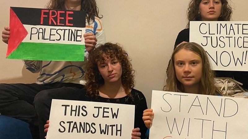Tunberg je na svom Instagram nalogu podelila video snimljen ispred zgrade univerziteta i dodala da policija rasteruje demonstrante. ”Studenti i ja smo u upravnoj zgradi Univerziteta u Kopenhagenu”, poručila je ona.