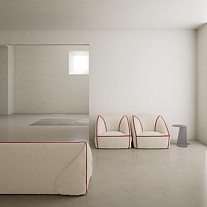 Ove godine u fokusu je bio pomak ka emocionalnom i taktilnom dizajnu. Umesto hladne perfekcije, dominirali su mekši, zaobljeni oblici, materijali koji pozivaju na dodir i prostori koji više deluju kao iskustvo nego kao klasičan showroom. Posebno se istakao trend soft livinga, gde su sofe, fotelje i kreveti postali skulpturalne, gotovo obavijajuće forme koje stvaraju osećaj sigurnosti i opuštenosti.